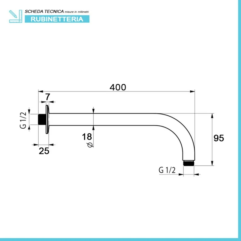 Braccio per soffione doccia 40 cm tondo caratteristiche tecniche: