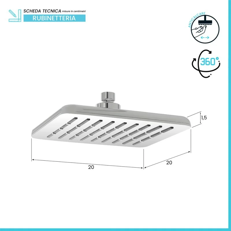 • Dimensione soffione:20x20 cm H 1,5 cm;