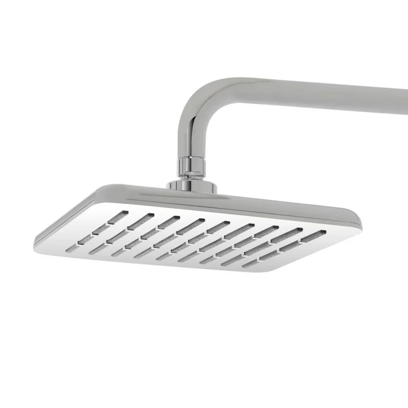 Il soffione doccia quadrato cromo di  dimensioni 20x20 dispone di un sistema anticalcare  e può ruotare di 360 gradi. E’ realizzato in ABS che garantisce durevolezza e leggerezza del prodotto. Con ugelli anticalcare e attacchi standard universali da G 1/2 è compatibile con qualsiasi impianto idrico.