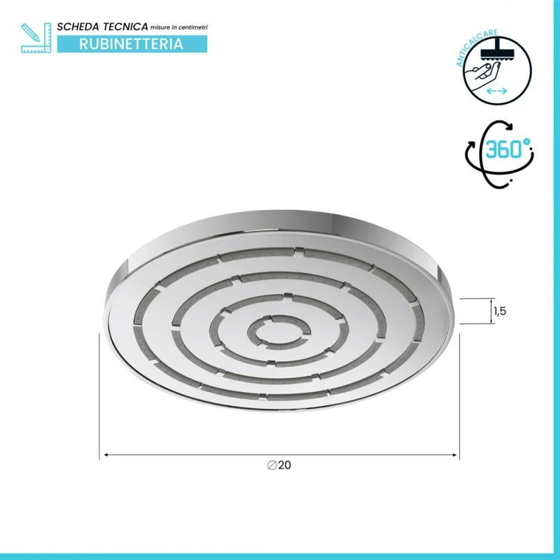 • Dimensione soffione: Ø 20 H 1,5 cm;