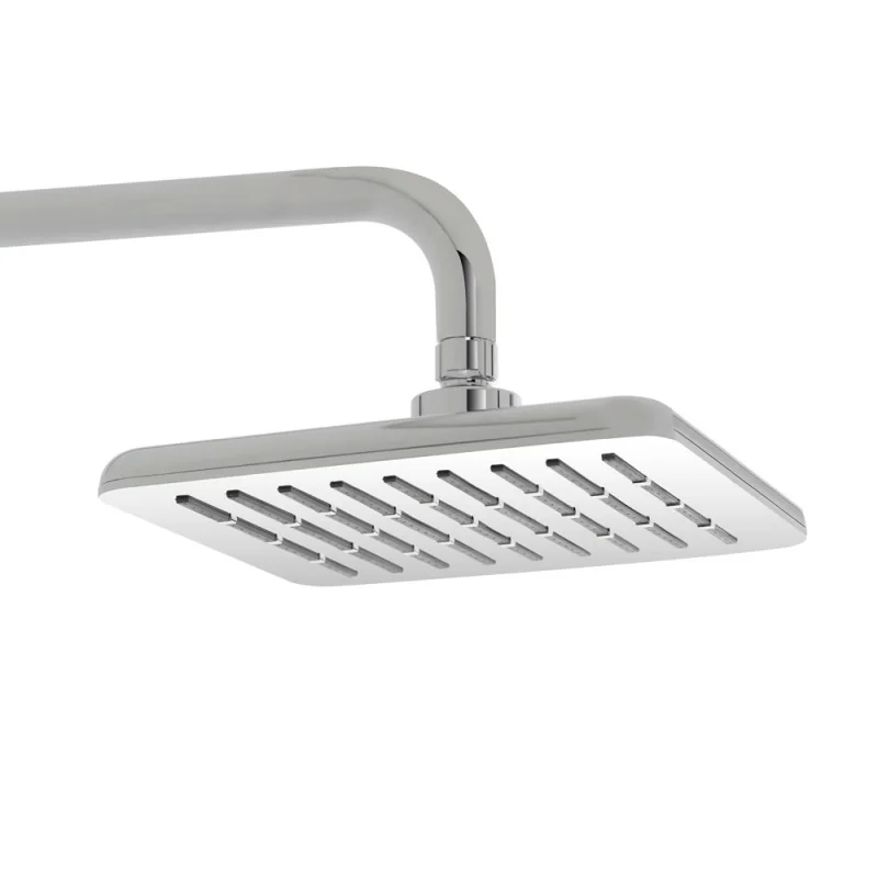 Il Set soffione doccia quadrato cromo di  dimensioni 20 x 20  con braccio in acciaio di 40 cm, è realizzata mediante l’uso di materiale anticalcare. Il soffione è realizzato in ABS che garantisce durevolezza e leggerezza del prodotto, con attacco a snodo ruotabile fino a 360 gradi. Con ugelli anticalcare e attacchi standard universali da G 1/2 è compatibile con qualsiasi impianto idrico.