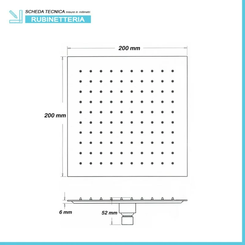• Dimensioni soffione quadrato:  20 x 20 cm;
