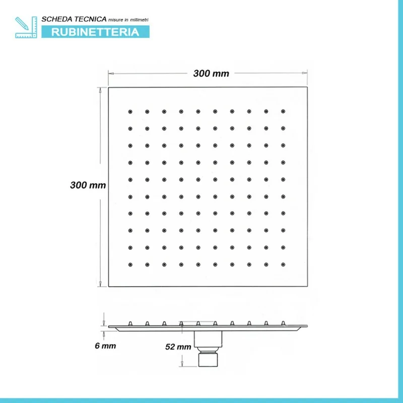• Dimensioni soffione quadrato:  30x30 cm;