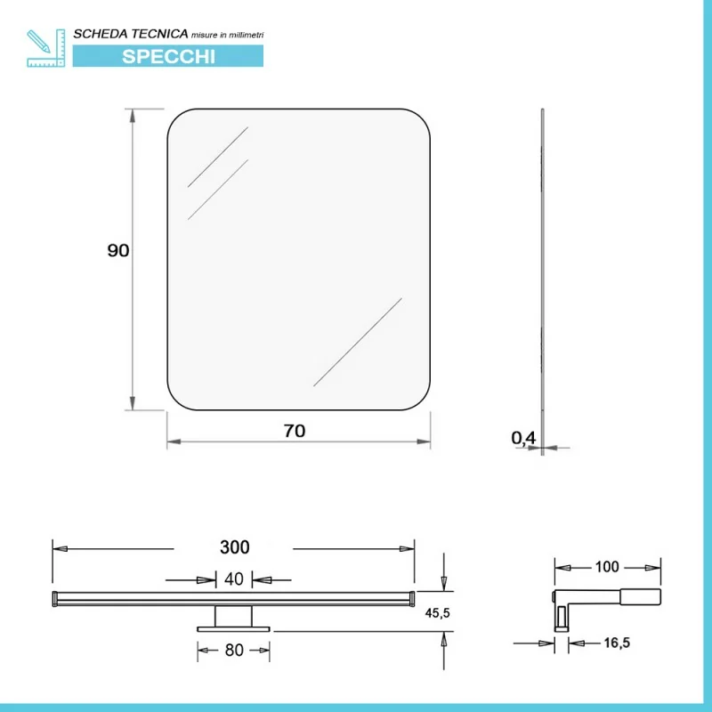Specchio bagno 70x90 cm caratteristiche tecniche: