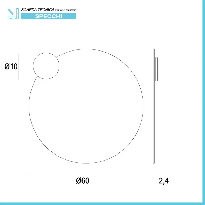 La forma pulita e minimale dello specchio proposto crea un’ampia superficie riflettente che dona all’arredo bagno un impatto estetico di notevole effetto. Le linee tonde culminano in un diametro di 60 cm,per uno specchio a filo lucido con uno spessore di soli 2,4 cm.