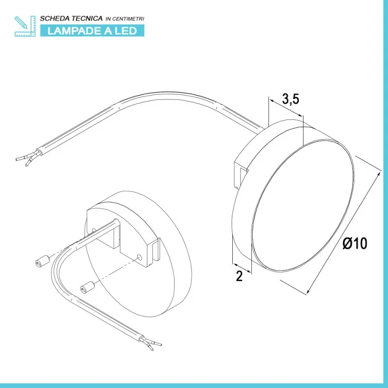 • Dimensioni applique:Ø 10 x p 3,5 cm;