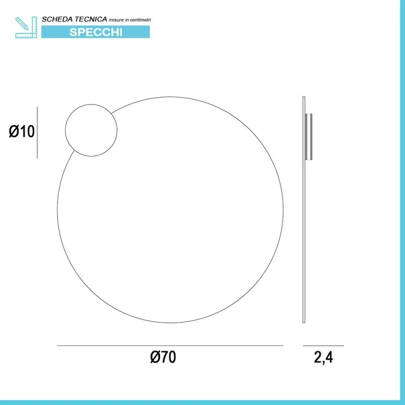 La forma pulita e minimale dello specchio proposto crea un’ampia superficie riflettente che dona all’arredo bagno un impatto estetico di notevole effetto. Le linee tonde culminano in un diametro di 70 cm,per uno specchio a filo lucido con uno spessore di soli 2,4 cm.