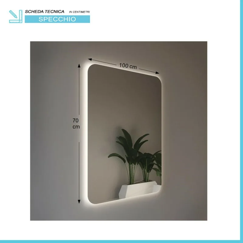 Specchio reversibile 100x70 illuminazione perimetrale LED e spessore 4 mm