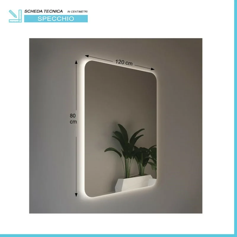 Specchio reversibile 120x80 illuminazione perimetrale LED e spessore 4 mm
