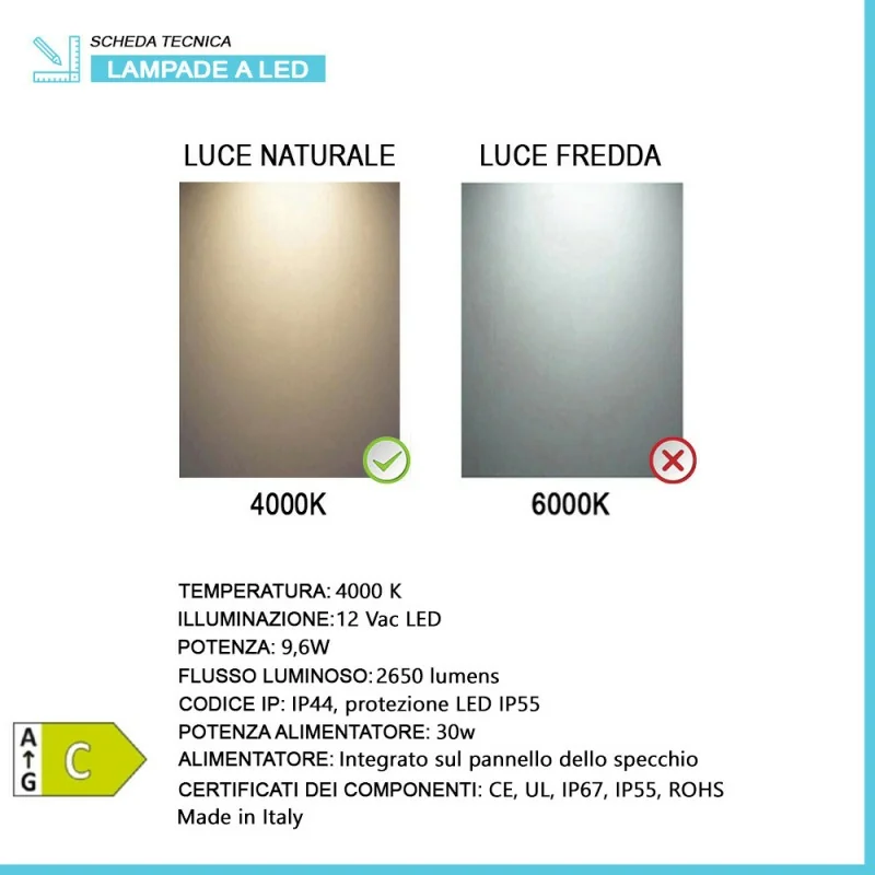 Specchio reversibile 70x80 illuminazione perimetrale LED e spessore 4 mm