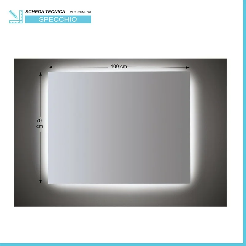Specchio LED 100x70 installazione reversibile e illuminazione perimetrale