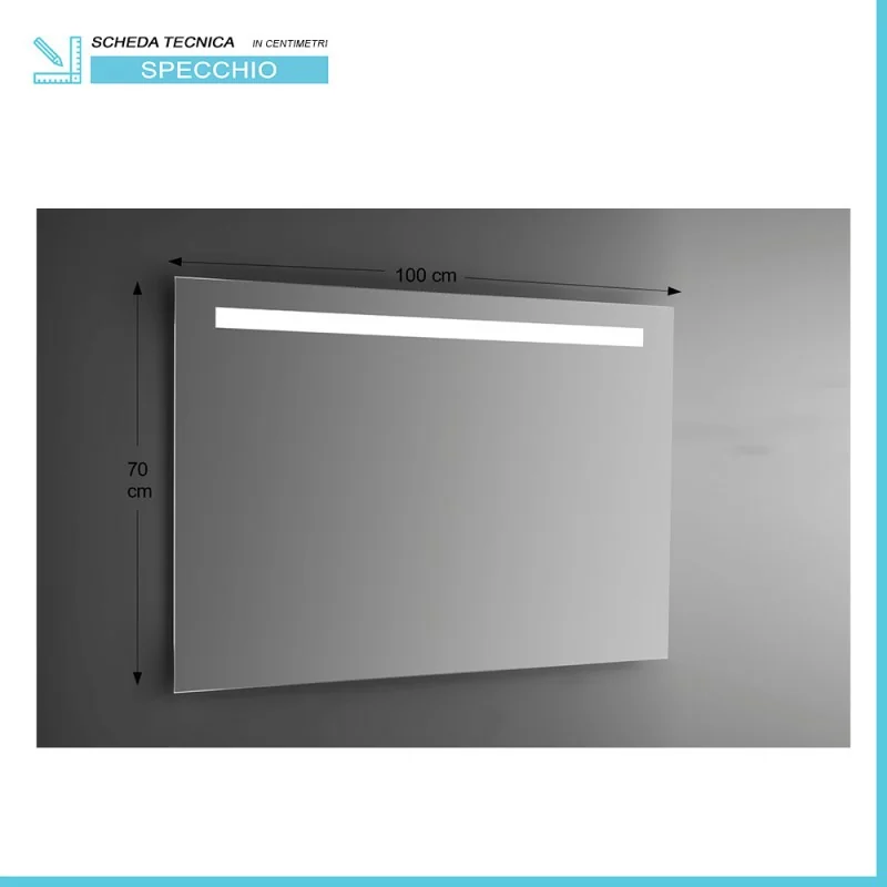 Specchiera da parete 100x70 con fascia LED e illuminazione interna