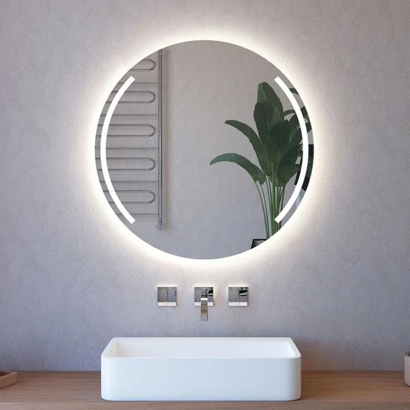 La specchiera dispone di una doppia sabbiatura ad arco e una retroilluminazione LED con luce naturale diffusa in maniera perimetrale ai bordi dello specchio,ideale per evitare particolari zone d’ombra con effetto cornice e garantire notevole risparmio elettrico con una lunga durata della luce stessa.