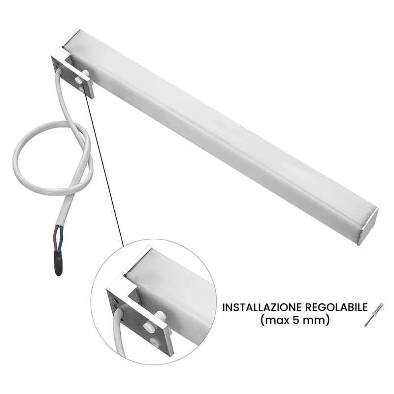 La specchiera è dotata di illuminazione LED mediante l’apposita lampada per creare un effetto elegante di luce che faciliti al meglio la propria quotidianità. Realizzato con materiali resistenti e durevoli, lo specchio proposto dispone di un vetro a filo con spessore contenuto di soli 4mm. L’illuminazione LED diffonde una luce naturale con temperatura 4000K e presenta un’installazione regolabile sulla specchiera con un massimo di 5 mm di tolleranza.