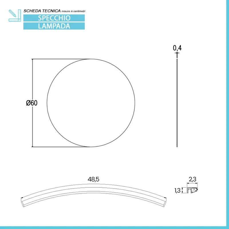 • Dimensioni specchio: diametro 60 x P 0,4 cm;