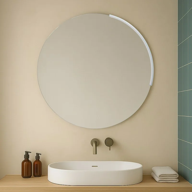 La striscia LED laterale, discreta ma potente, crea una luce soffusa e avvolgente, perfetta per la tua routine quotidiana e per momenti di relax. Grazie al design essenziale e al profilo ultra-sottile, questo specchio da parete è la scelta ideale per chi desidera un bagno luminoso, ordinato e di tendenza.