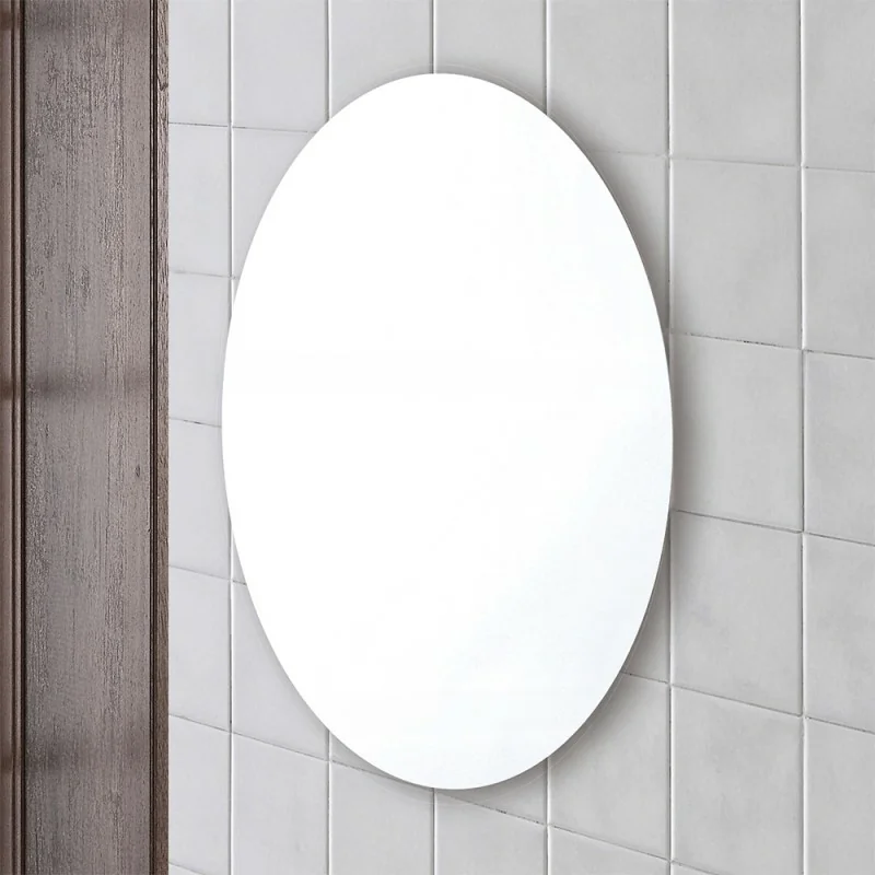 Specchiera ovale a filo con spessore 4 mm,installazione reversibile con fissaggi inclusi