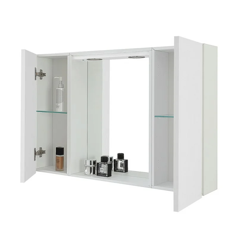 Specchiera contenitore con ante ad apertura esterna,ripiani interni e faretti LED superiori