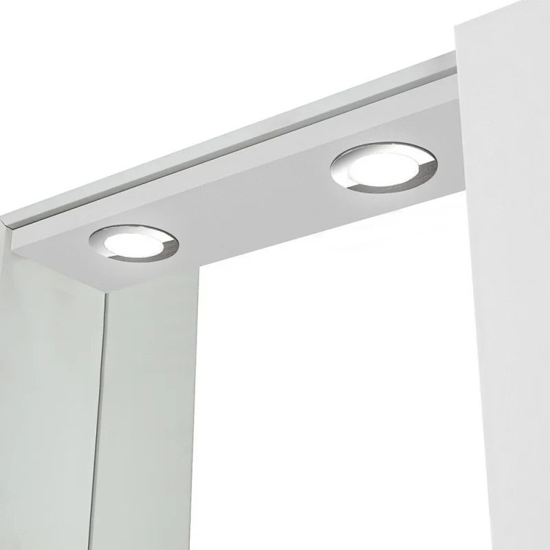 Specchiera con armadietto contenitore e anta con apertura esterna, faretti LED superiori