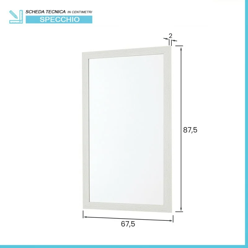 Specchiera rettangolare a parete 67x87 cm con spessore 2 cm,cornice in legno bianco