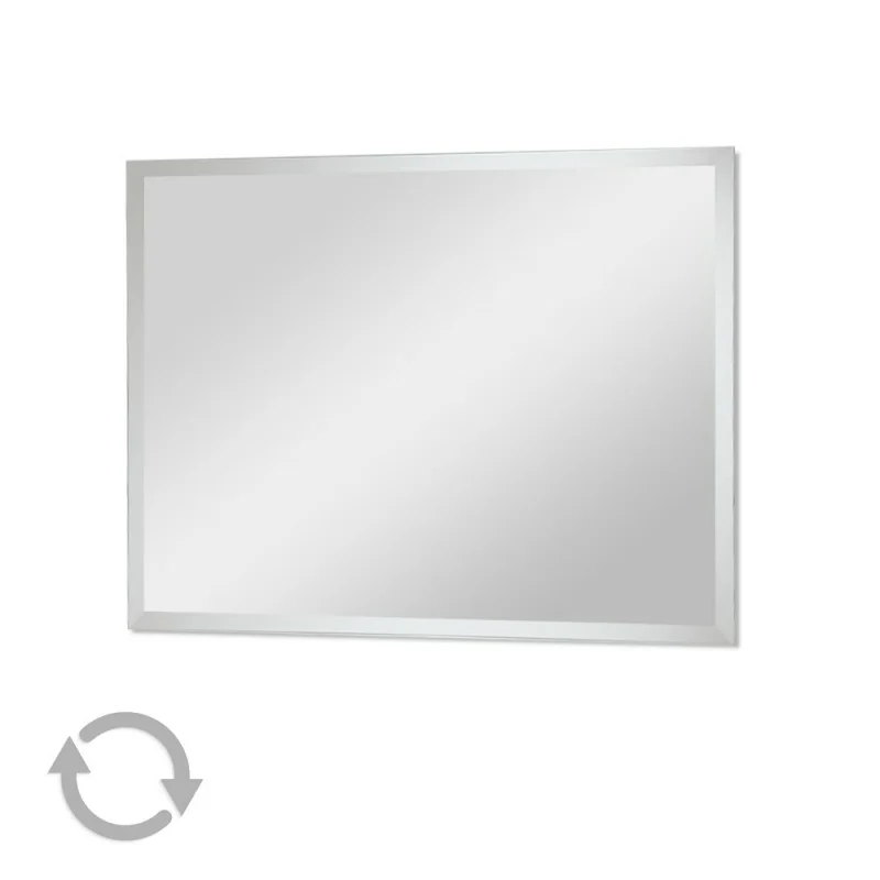 Specchio Rettangolare con Bisellatura 80x60 Reversibile Specchio rettangolare 80x60 con bisellatura ad installazione reversibile (posizionabile sia orizzontalmente che verticalmente) Scheda tecnica specchio rettangolare con bisellatura 80x60 reversibile Bisellatura specchiera rettangolare con montaggio reversibile