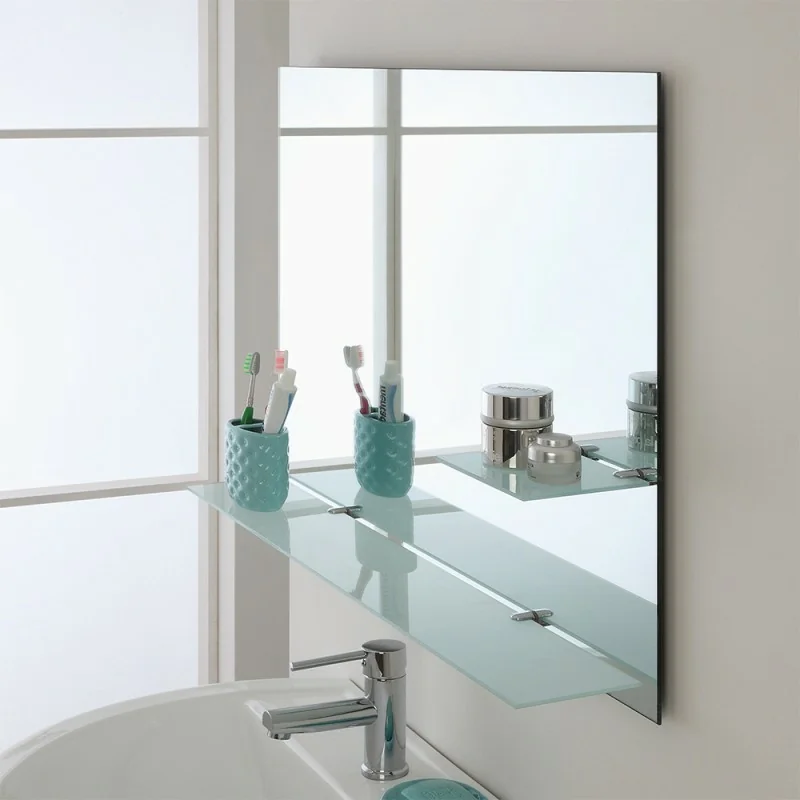 Specchiera rettangolare con spessore 4 mm,2 mensole in vetro satinato con spessore 6 mm