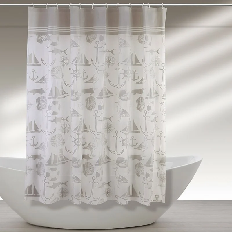 Indulgi in un'oasi di benessere con questa raffinata tenda da doccia. Realizzata in acrilico di alta qualità,un materiale impermeabile resistente alle macchie e super facile da pulire,è caratterizzata da un elegante fondo bianco e da un'incantevole motivo marino in beige,mixati in una combo ideale in quasiasi tipologia di stanza da bagno.
