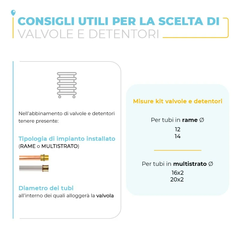 • DA ABBINARE kit con valvola e detentore,acquistabile separatamente;