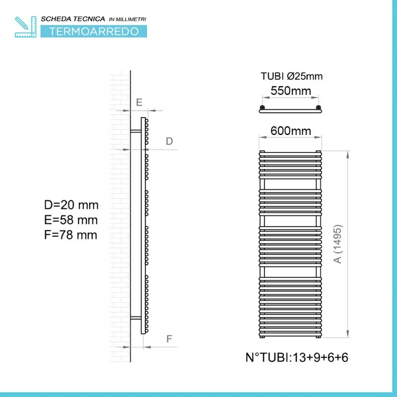 Termoarredo design Bianco 600x1500 Interasse 550 mm Scaldasalviette design Bianco 600x1500 Interasse 550 mm Scheda tecnica Radiatore design Bianco 600x1500 Interasse 550 mm Consigli utili per la scelta del Termoarredo design Bianco