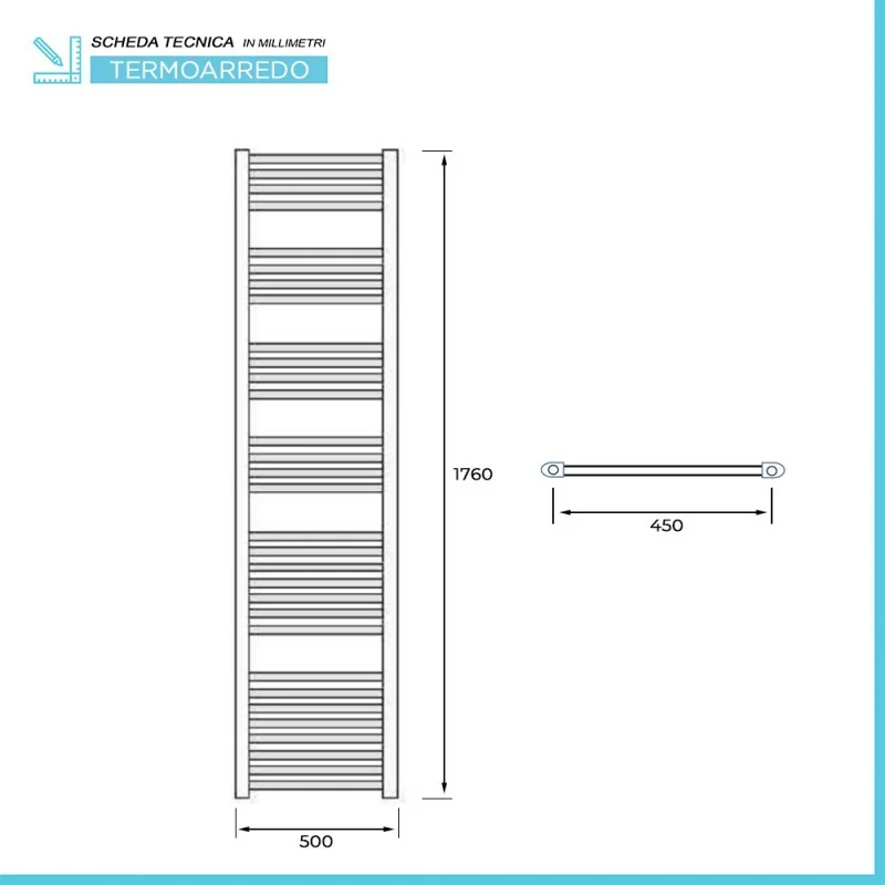Termoarredo scaldasalviette – cromato curvo L 50 x H 180 cm con interasse 45 cm
