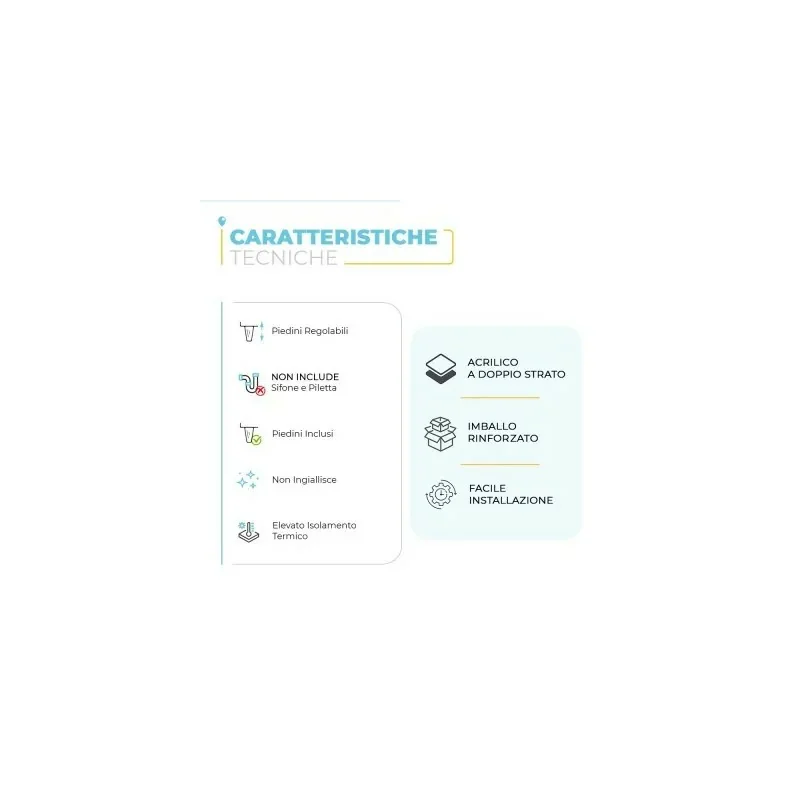 • Rubinetteria NON INCLUSA installabile a bordo vasca;