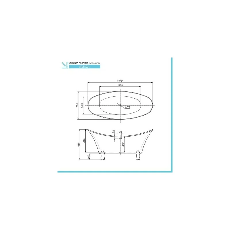 Vasca da bagno freestanding classica 173x75 Piedini cromo a zampa di leone regolabili Scarlett Vasca da bagno freestanding classica 173x75 Piedini cromo a zampa di leone regolabili in altezza Scheda tecnica della Vasca da bagno freestanding Scarlett Caratteristiche tecniche della Vasca da bagno freestanding Scarlett