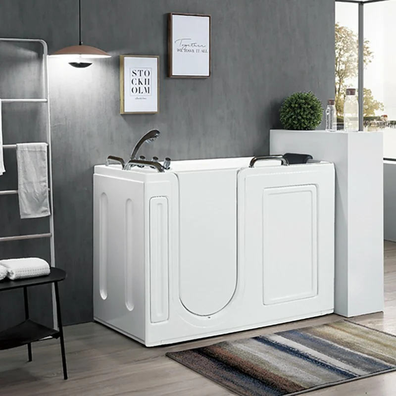 Vasca da bagno con sportello completa di rubinetteria,cuscino poggiatesta e maniglioni