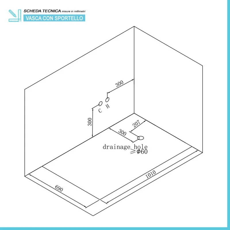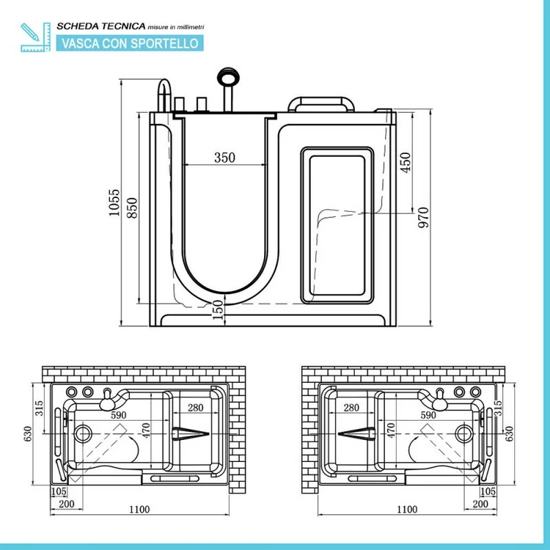 Vasca con sportello 110x63x97 apertura interna a sinistra