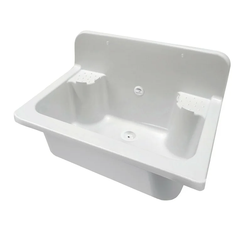Vasca lavatoio in resina bianca per interno o esterno,pre fori per rubinetteria lato dx e sx