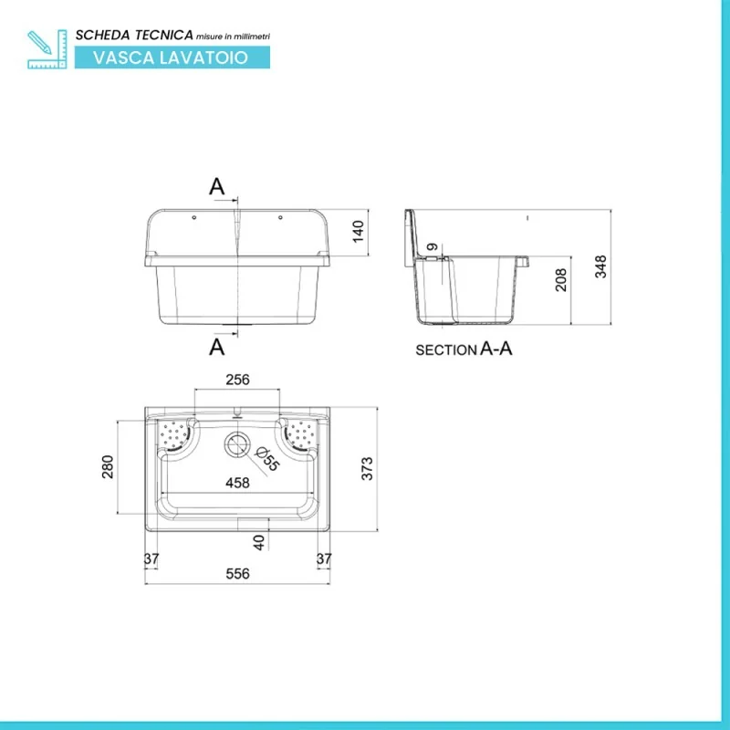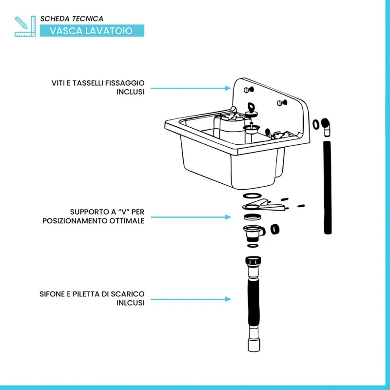 La vasca lavatoio dispone di pratico ripiano poggia sapone,ideale per avere a portata di mano tutto ciò che serve durante  il lavaggio della biancheria. Per una rapida installazione,la vasca lavatoio presenta dei pre fori per la rubinetteria sia lato dx che sx ed include i fissaggi per il montaggio a parete.