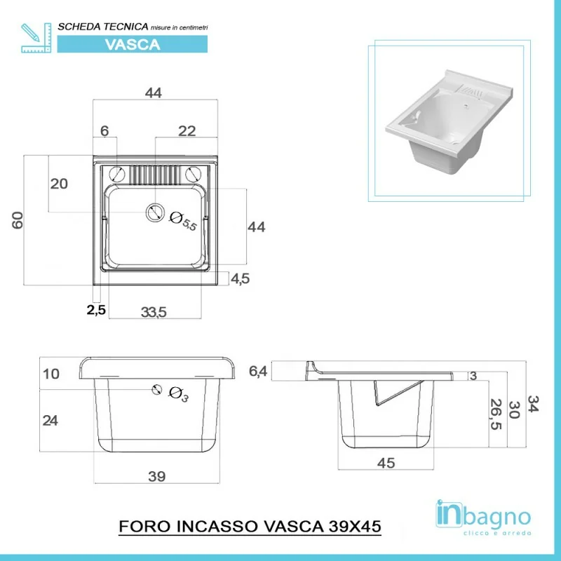 Vasca lavatoio 45x60 cm caratteristiche tecniche: