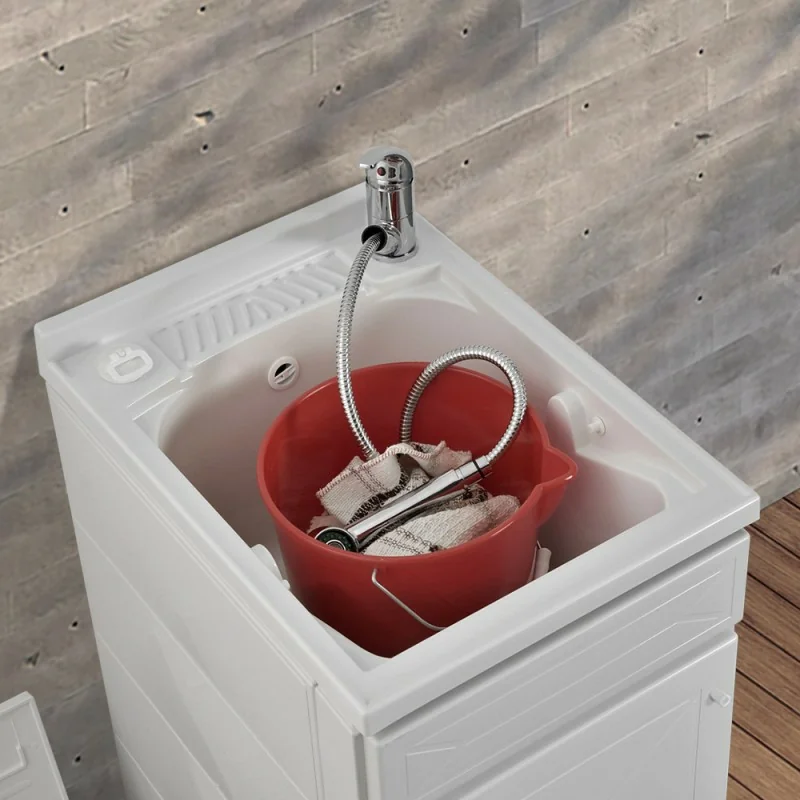 Il lavatoio proposto è completo di foro per troppo pieno e dispone di pre fori sottostanti per la rubinetteria sia lato dx che sx. La vasca lavapanni può essere installata sia da appoggio su piano che incassata con mobile abbinato 45x60 cm.