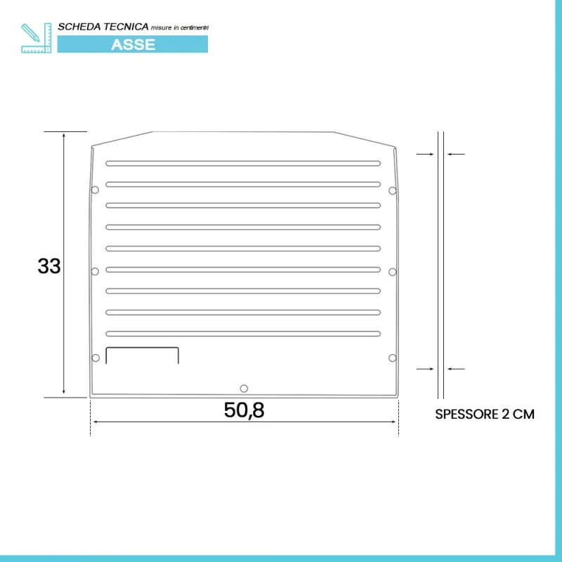 • Dimensioni: L 50,8 x p 33 cm, spessore 2 cm;
