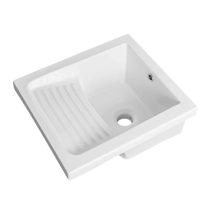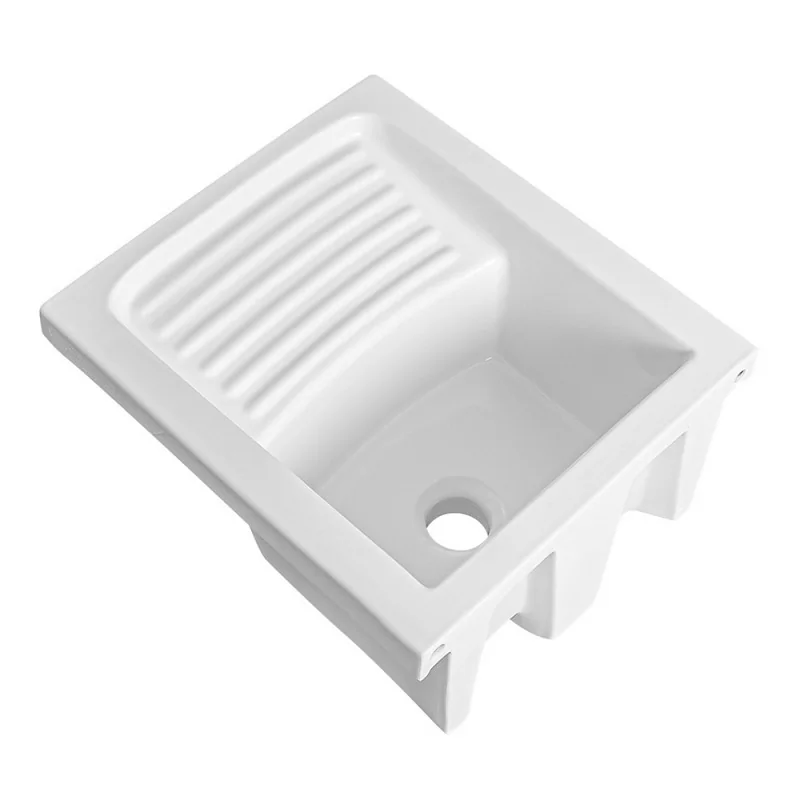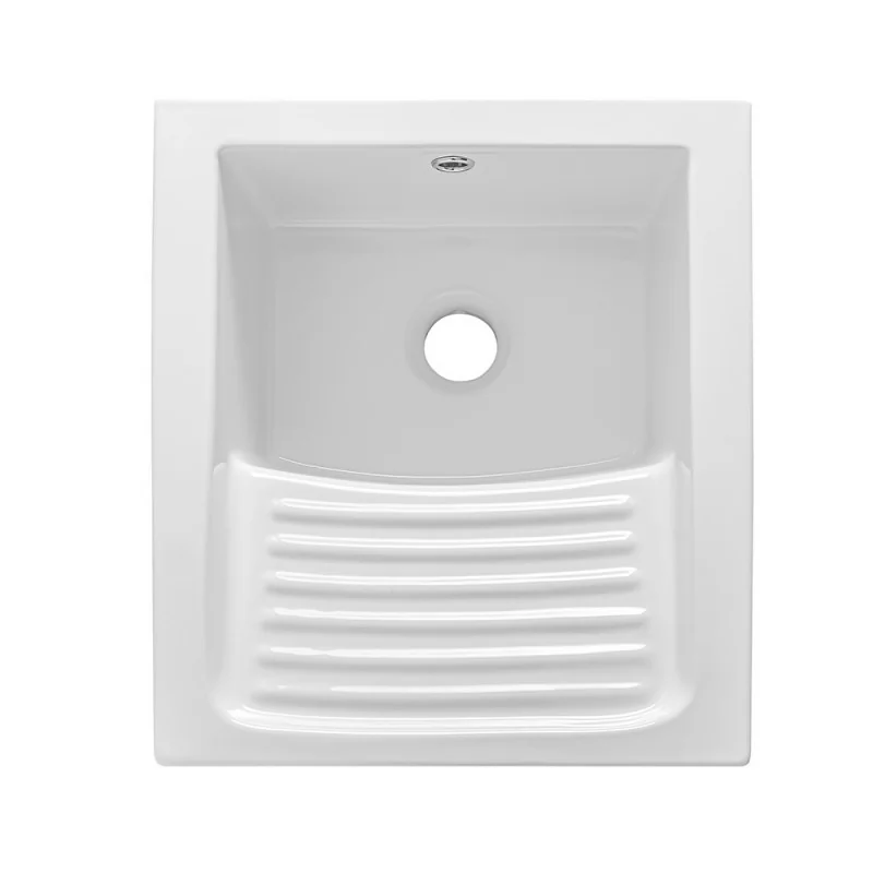 Vasca lavatoio 45x50 cm in ceramica lucida con strofinatoio integrato