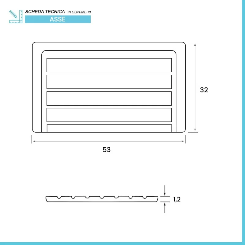 • Dimensioni:L 53 x p 32 cm,spessore 1,2 cm;