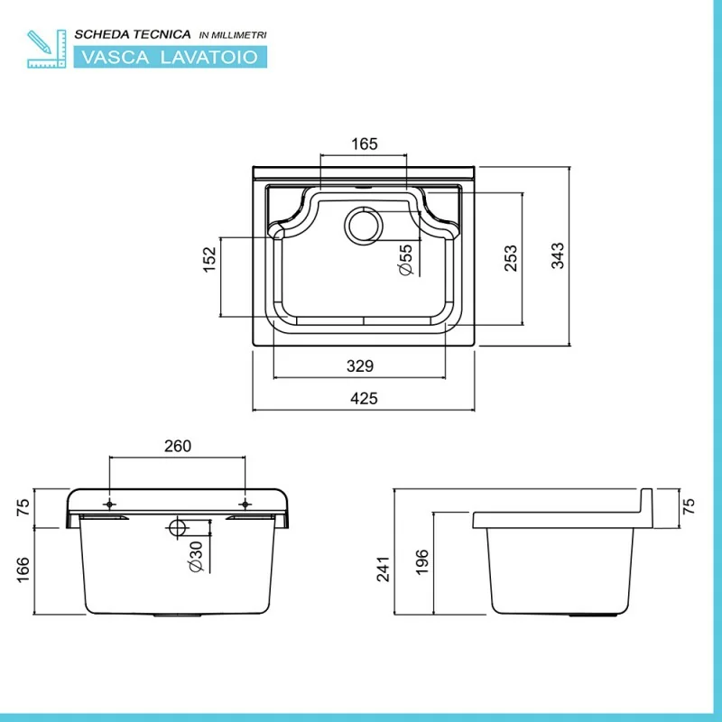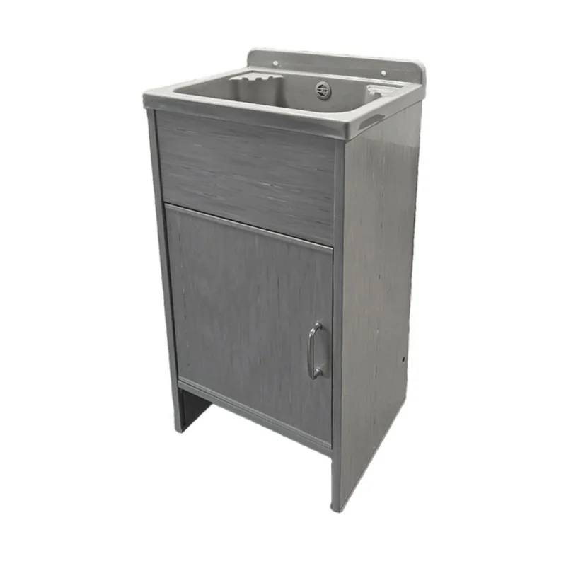 Il pilozzo è realizzato in plastica ultra resistente con finitura grigia,materiale ideale per ambienti esterni,capace di contrastare agenti atmosferici o detergenti chimici aggressivi. La vaschetta lavapanni include kit di scarico con sifone,piletta e tappo di copertura;viene proposta anche in abbinamento con mobile lavatoio.