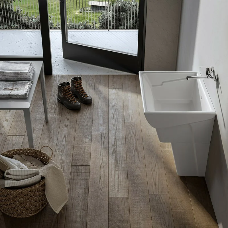La collezione Messico di Ceramica Dolomite propone imponenti pilozzi lavatoio da installare in appoggio sugli appositi piedini in ceramica della stessa linea:linee classiche che culminano in dimensioni generose,ideale per gestire con comodità la zona lavanderia.