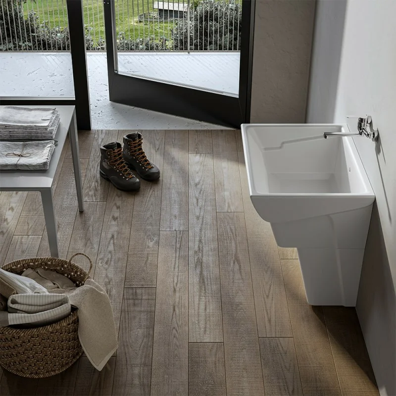 La collezione Messico di Ceramica Dolomite propone imponenti pilozzi lavatoio da installare in appoggio sugli appositi piedini della stessa linea:linee classiche che culminano in dimensioni generose,ideale per gestire con comodità la zona lavanderia.