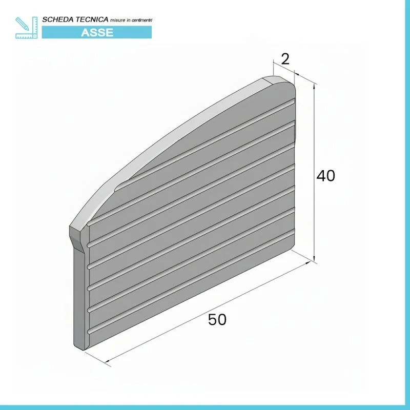 • Dimensioni asse: L 50 x P 40 x H 2 cm;