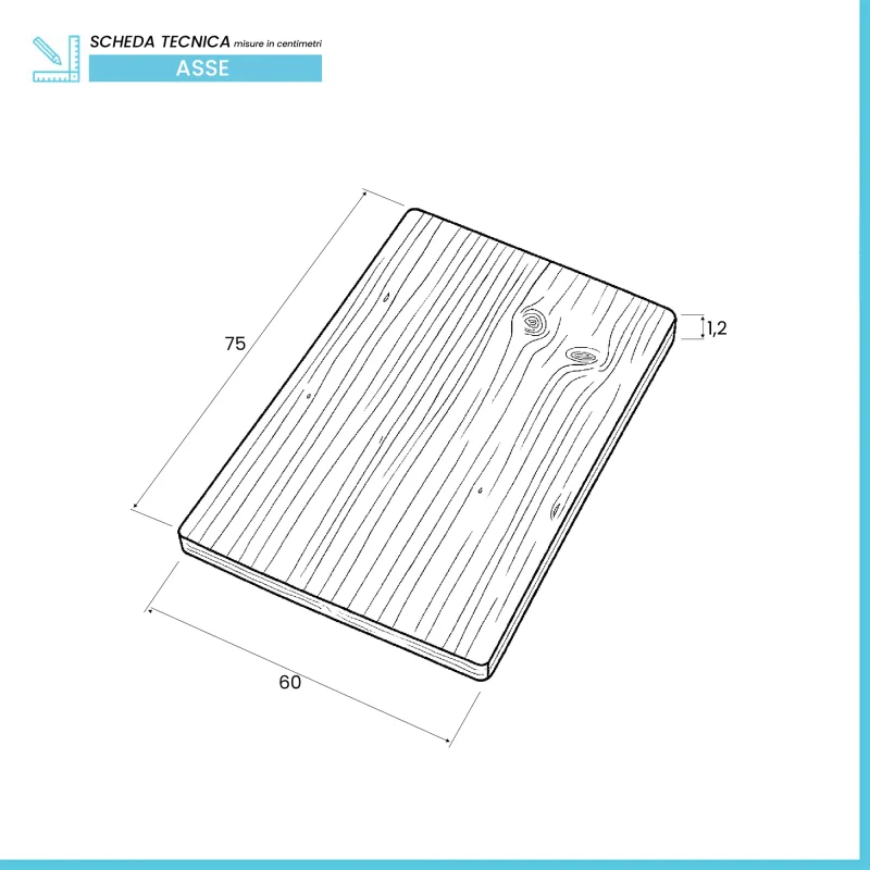 • Dimensioni: L 75 x p 60 cm, spessore 1,2 cm;