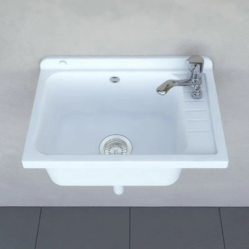Pilozzo da muro 58x38 bianco PVC piletta in acciaio inox 9 cm inclusa