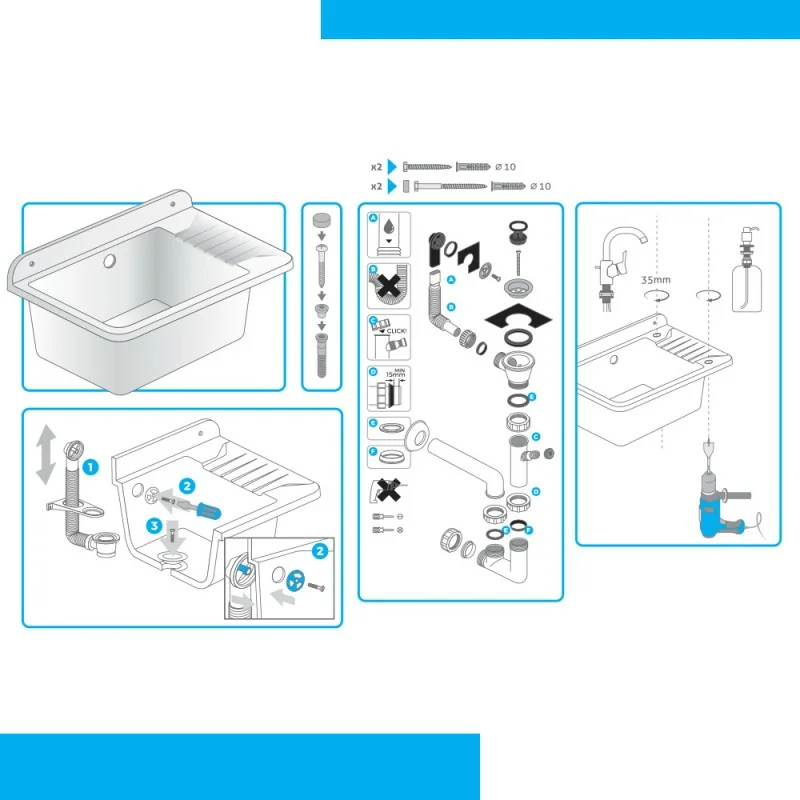 • INCLUDE sifone di scarico e piletta;
