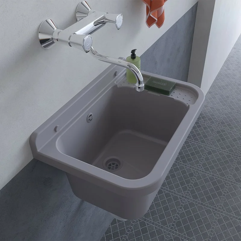 • Tipologia: vasca lavatoio con scarico e miscelatore a canna alta;