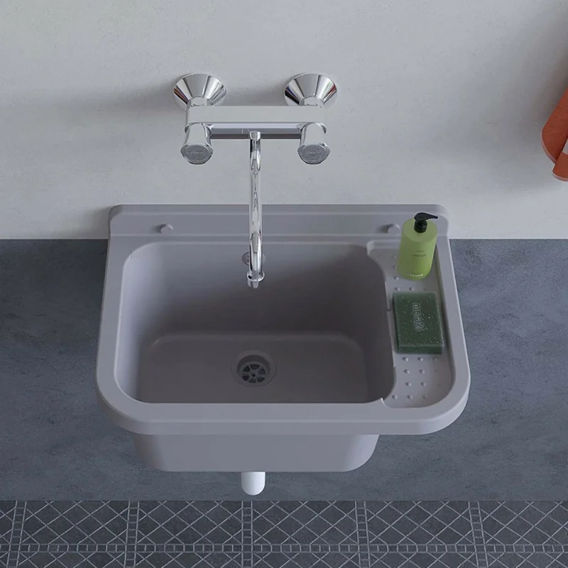 Compatto, resistente e completo di tutto: questo pilozzo sospeso in resina grigio è la soluzione ideale per chi cerca praticità senza rinunciare allo stile. Facile da installare grazie al kit di fissaggio incluso, è perfetto per lavanderie o spazi esterni grazie al materiale ultra-resistente agli agenti atmosferici e ai detergenti. La vaschetta con pratico spazio porta sapone è dotata di foro troppo pieno, predisposizione al foro miscelatore e kit di scarico con sifone e piletta. Il set è completato da un elegante miscelatore a canna alta in acciaio inox cromato, orientabile a 360°, che unisce design moderno e funzionalità quotidiana.